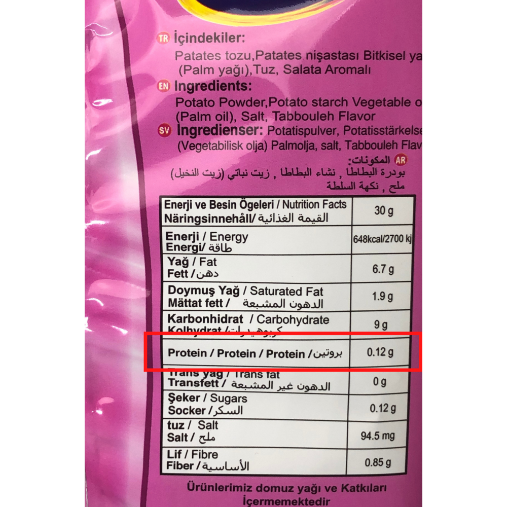 30 g üründe 0.12 protein bulunmaktadır.