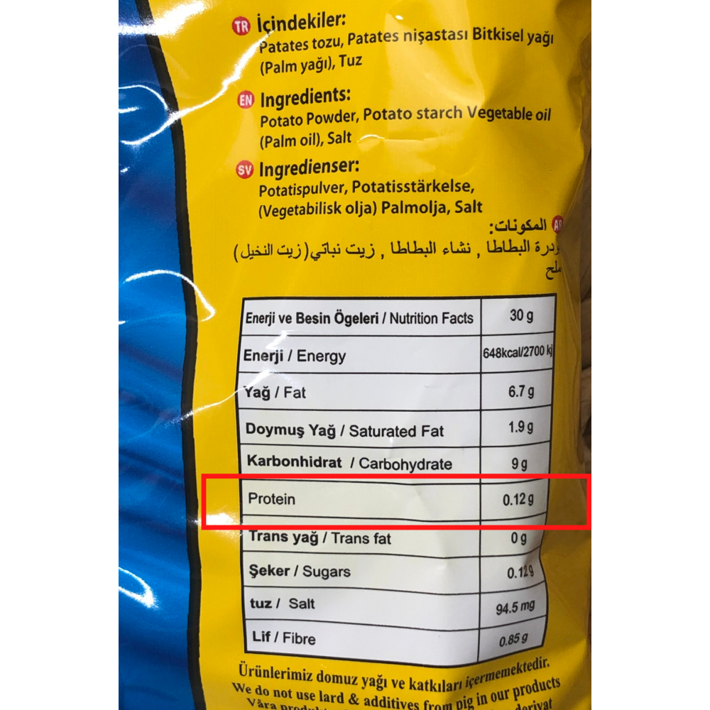 30g üründe 0,12 gr Protein bulunur.